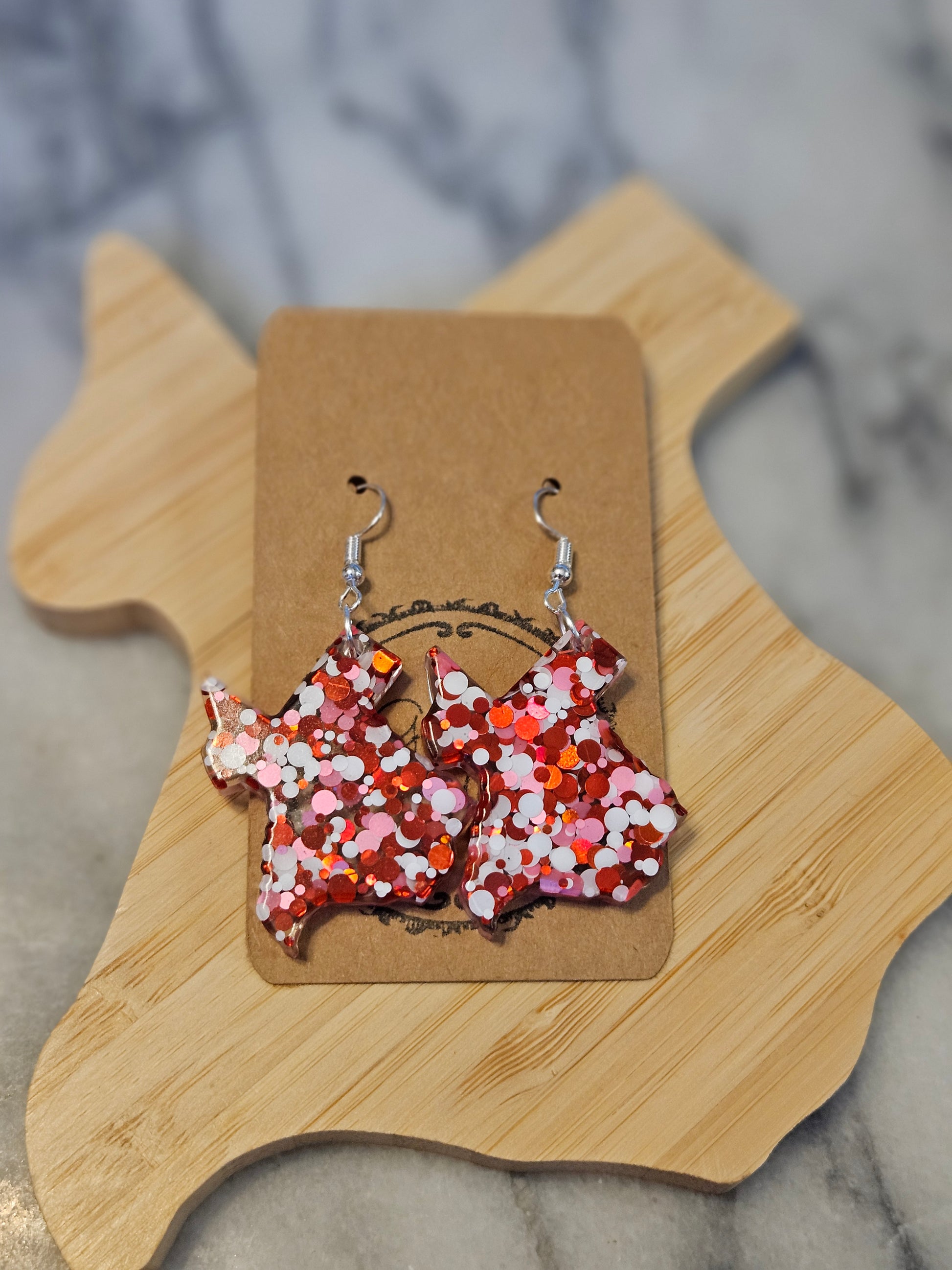 These Texas shaped earrings will pair perfectly with your team tee! Or maybe you're trying to match your adorable outfit you picked out from that boutique you love so much downtown! Either way this is the perfect shape for all you Texas lovin' gals!