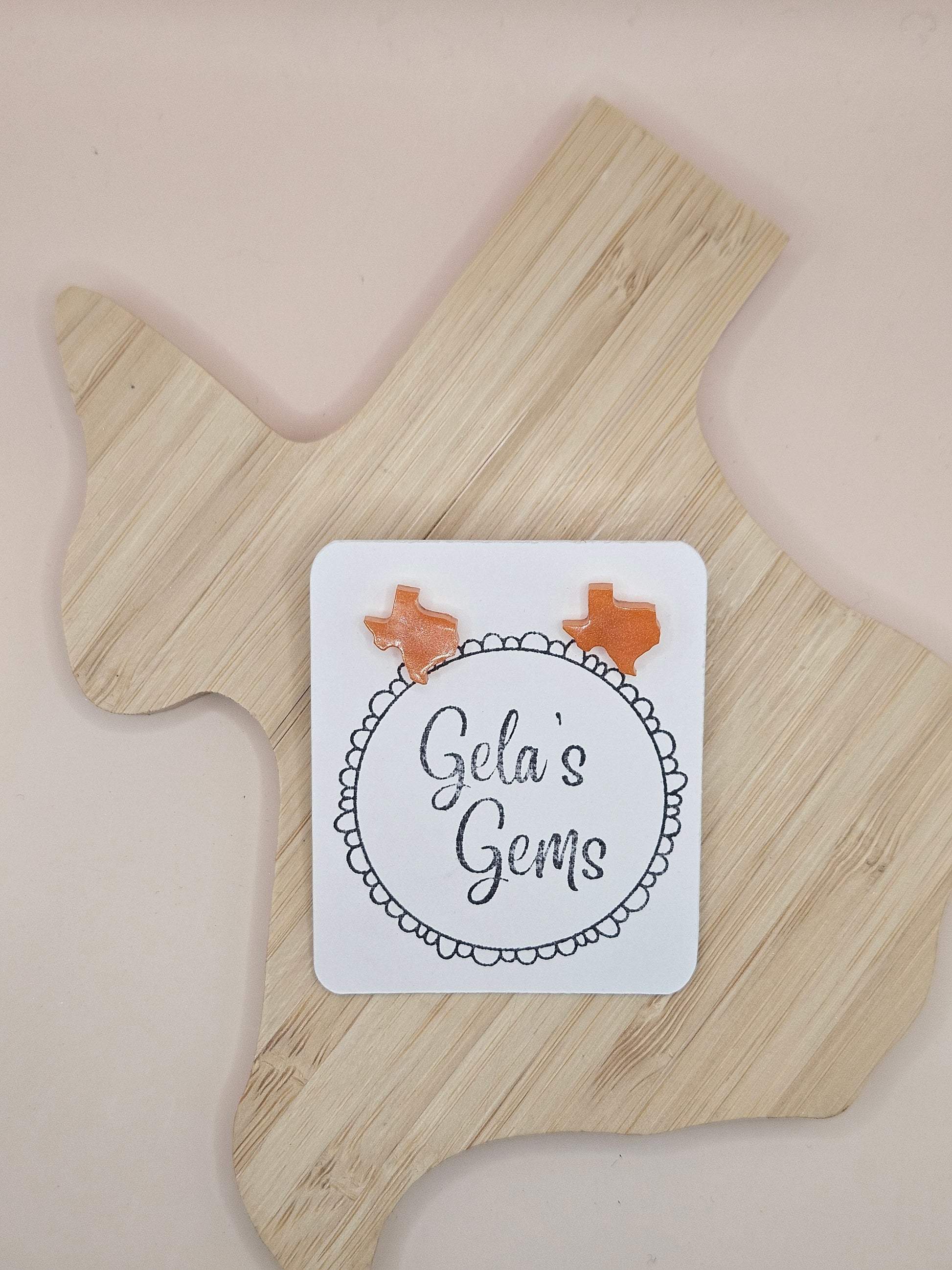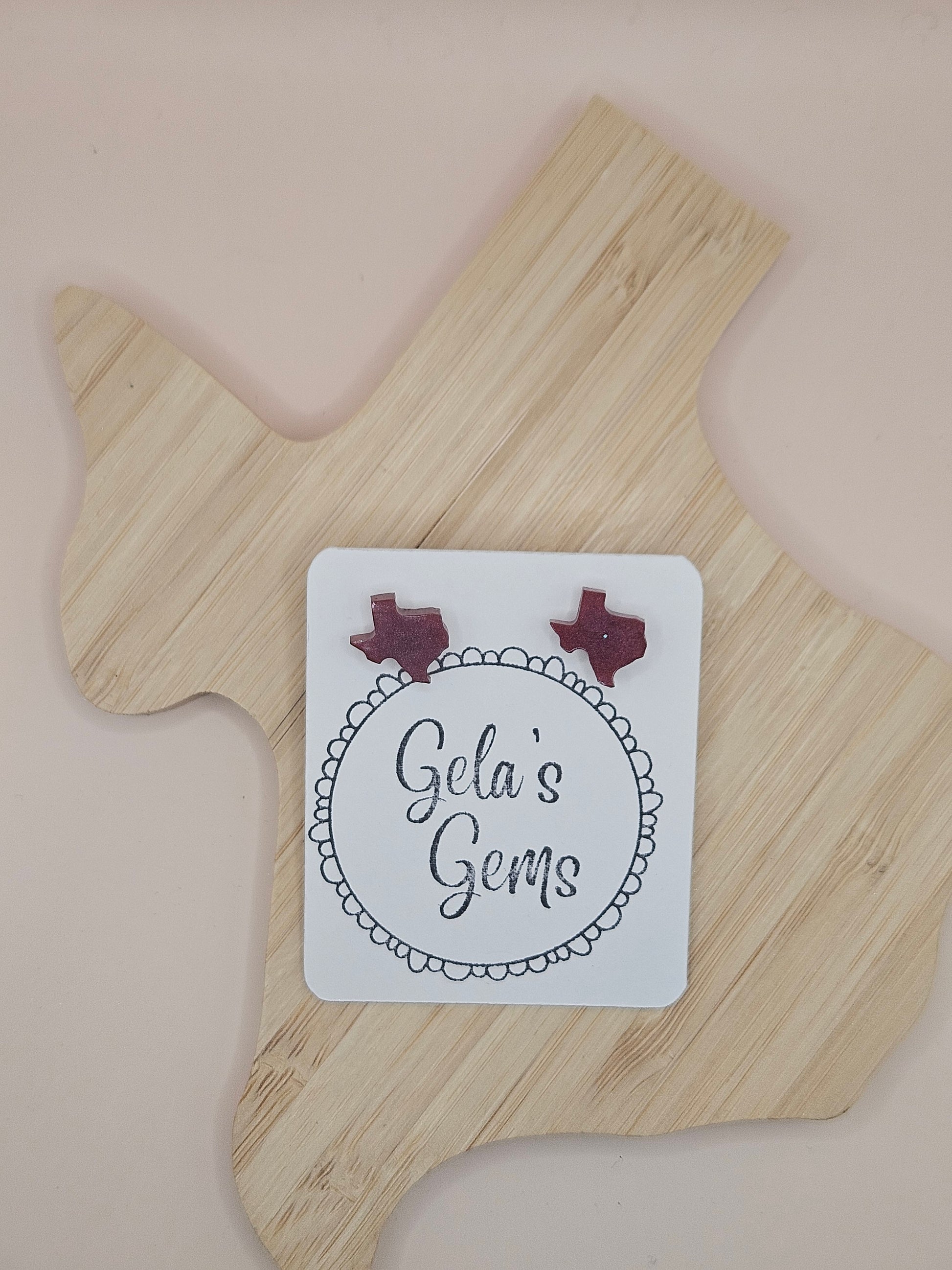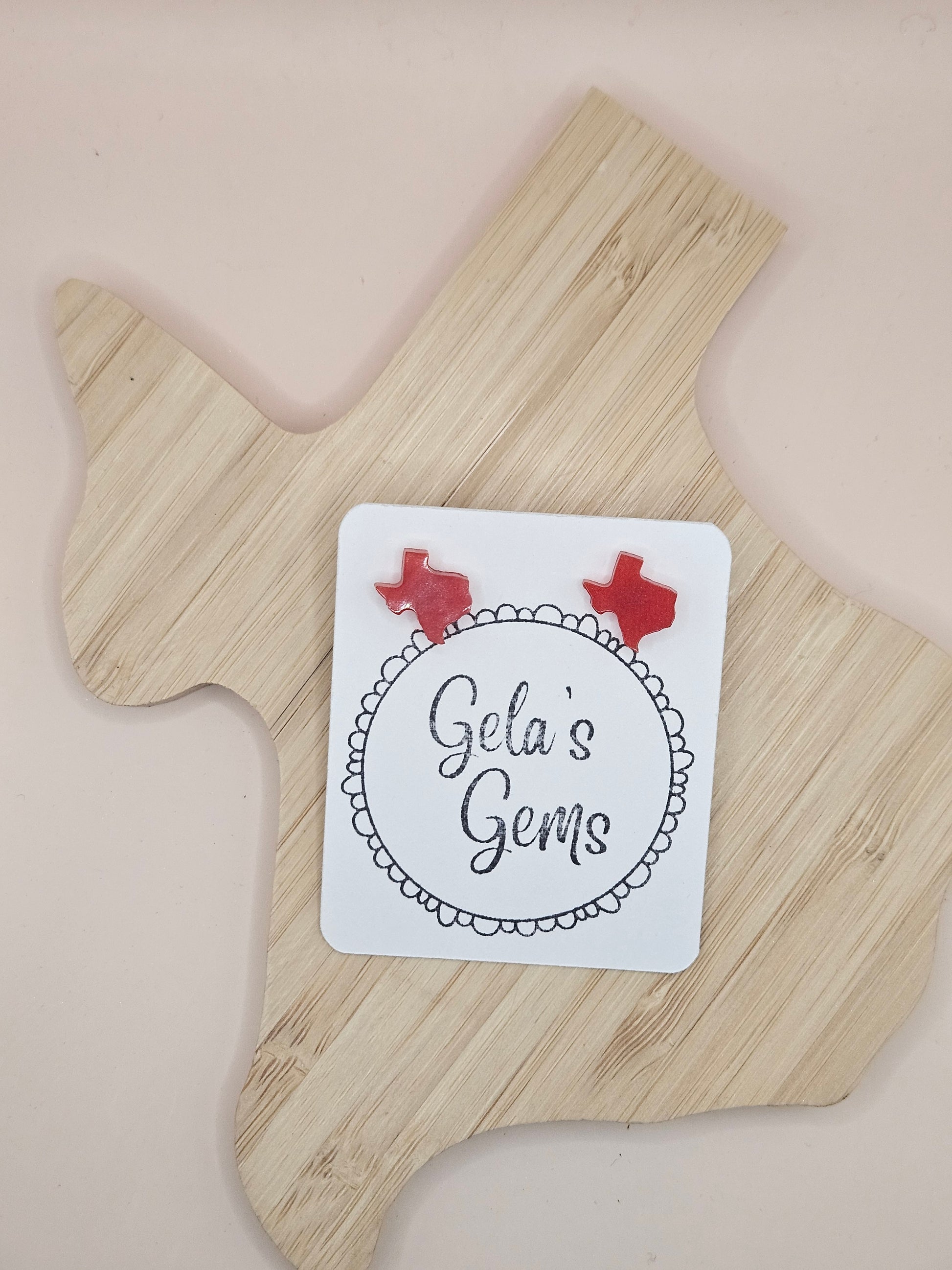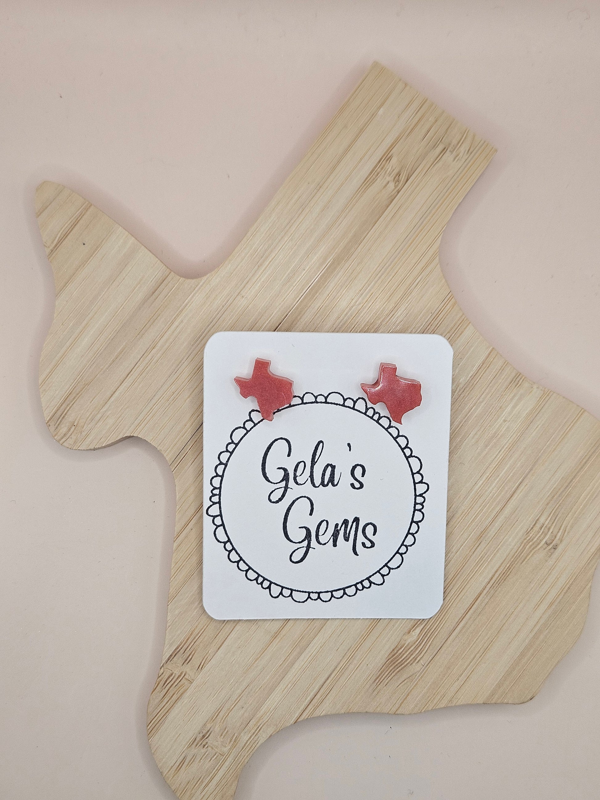 Show off your Texas pride in style with these handmade Texas Stud earrings! Each pair is carefully crafted by hand and available in a wide variety of vibrant colors - perfect for adding a pop of personality to your every day look or cheering on your favorite team with spirit.