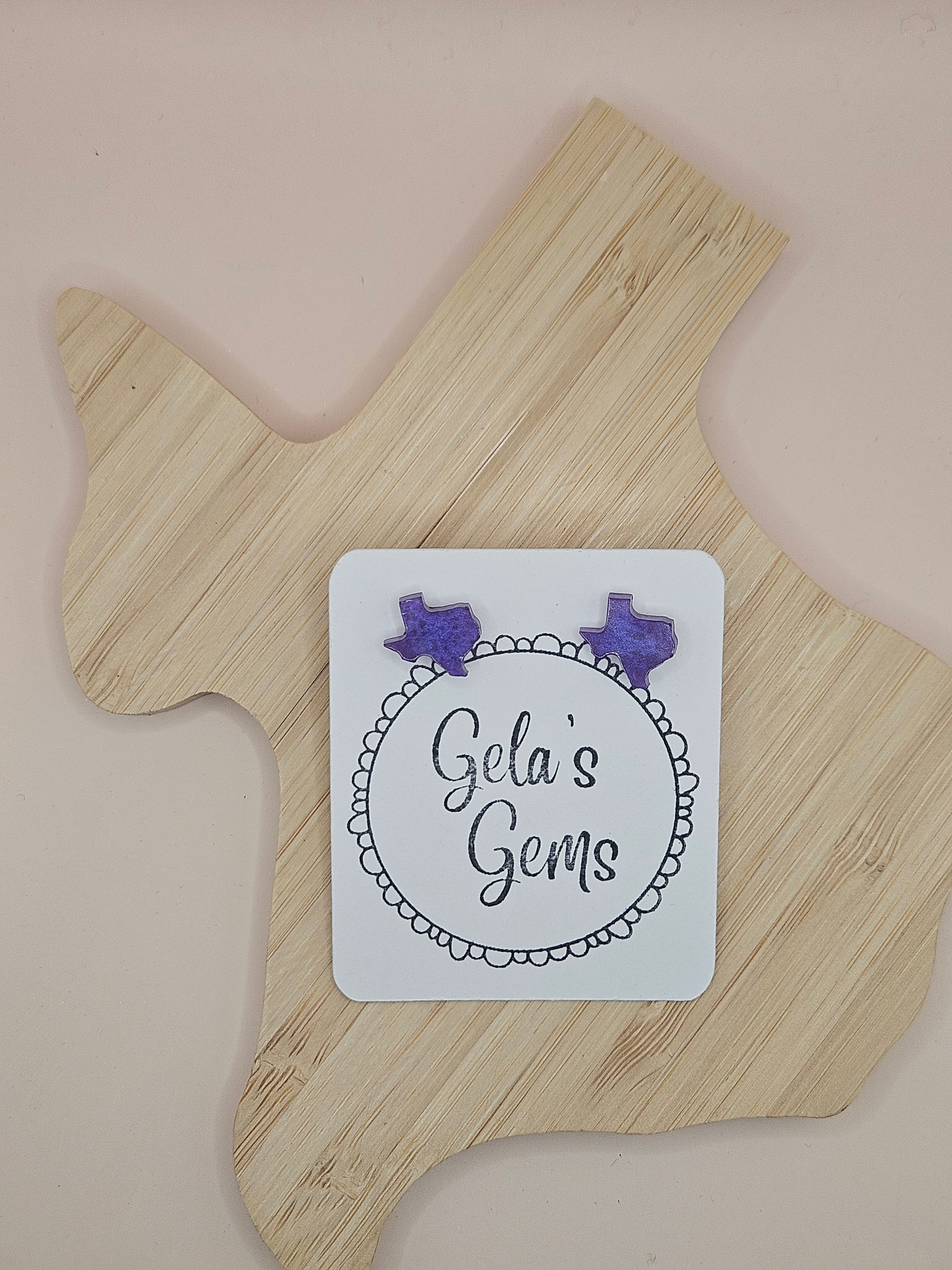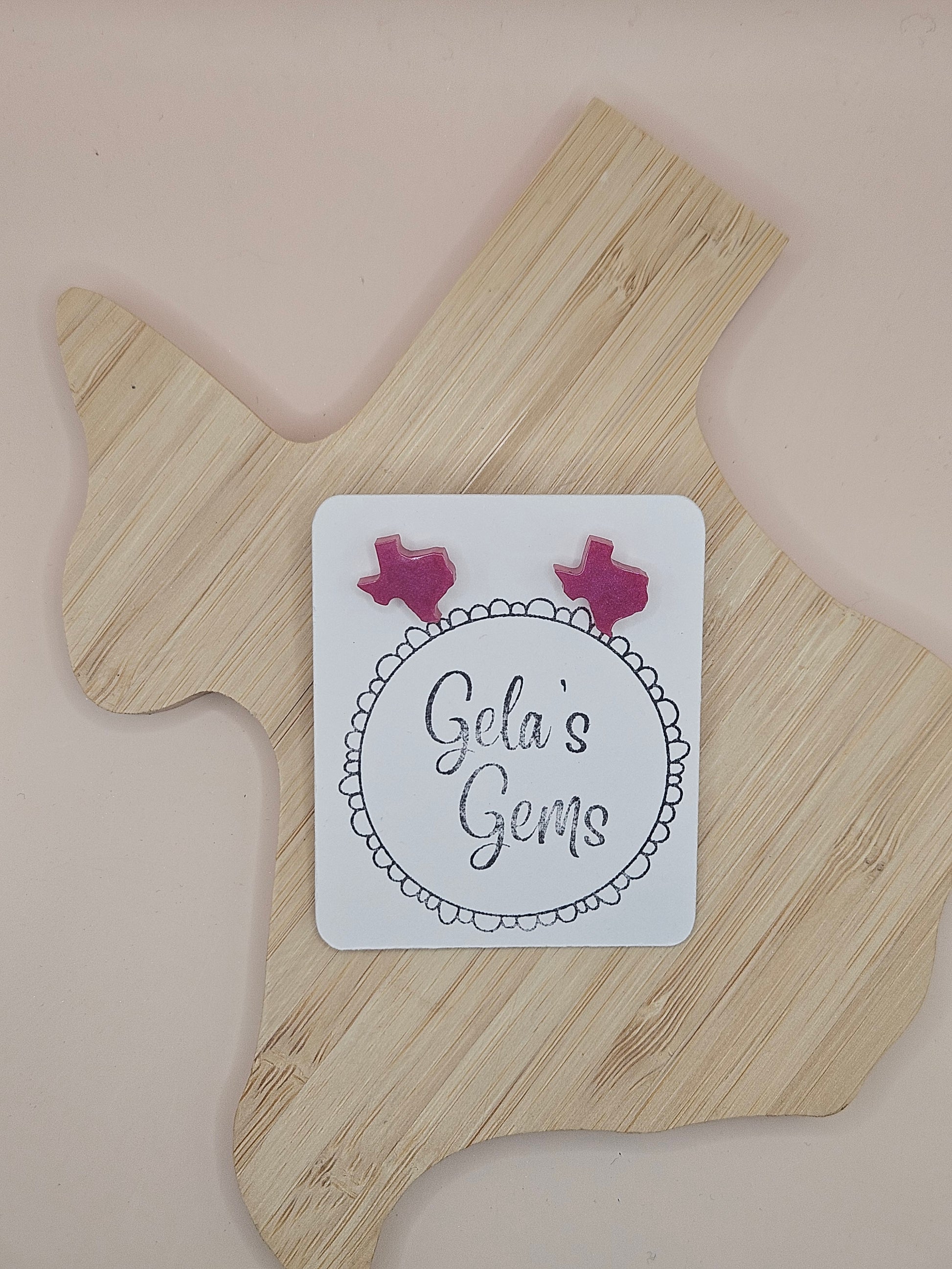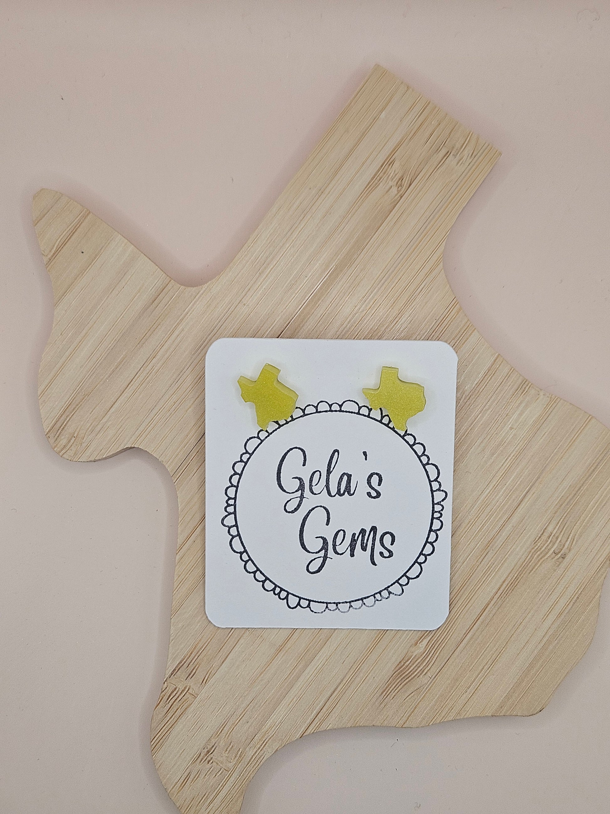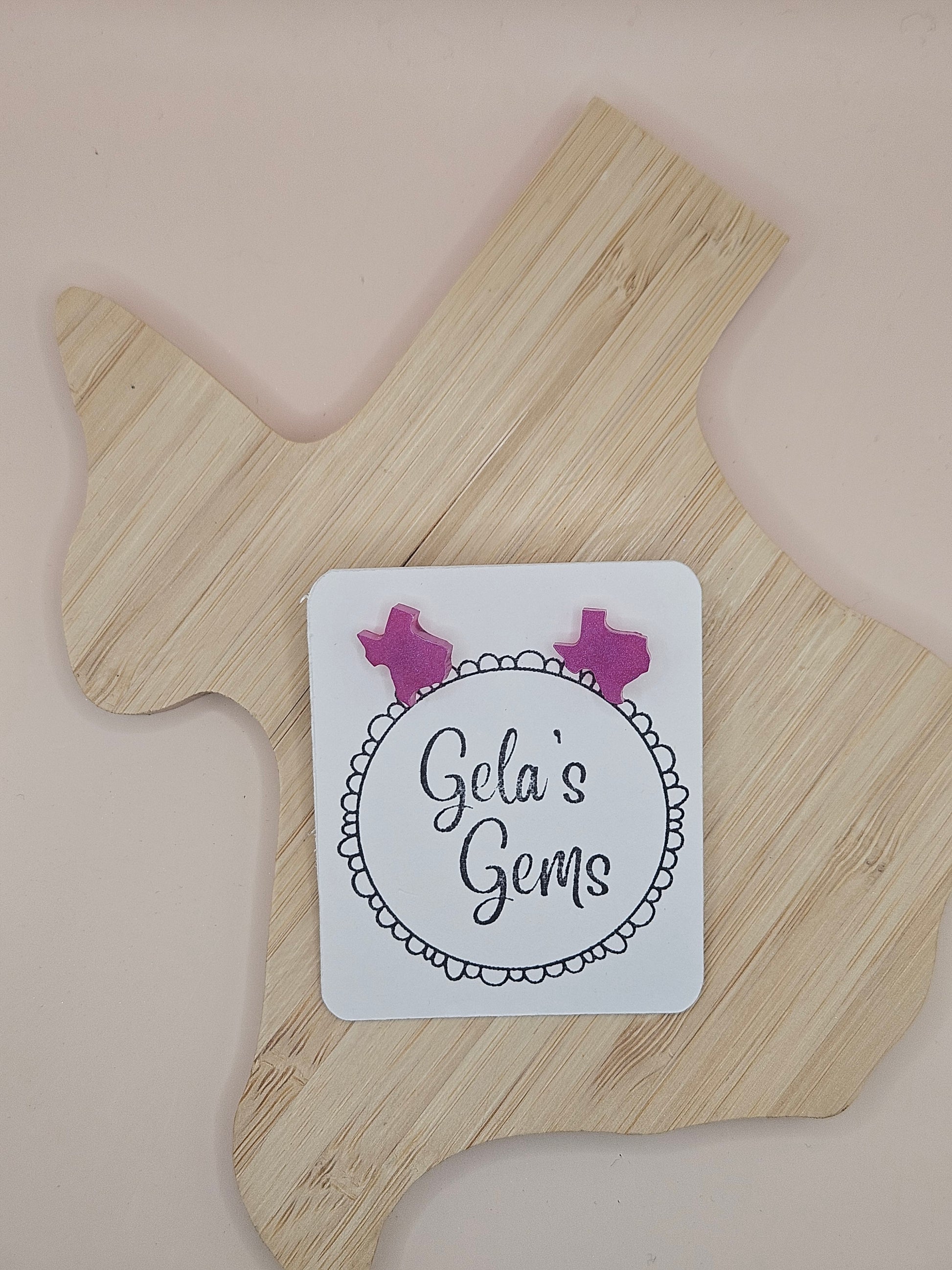 Show off your Texas pride in style with these handmade Texas Stud earrings! Each pair is carefully crafted by hand and available in a wide variety of vibrant colors - perfect for adding a pop of personality to your every day look or cheering on your favorite team with spirit.